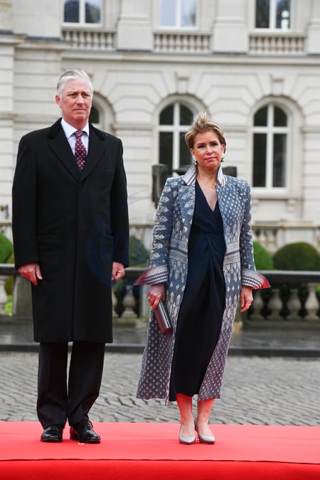 Le roi Philippe de Belgique , la grande-duchesse Maria Teresa de Luxembourg - Le grand-duc Henri de Luxembourg et la grand duchesse Maria Teresa sont en visite d'état à Bruxelles le 16 avril 2024. © Frédéric Andrieu / Bestimage Belgium, Brussels, 16 april 2024 State visit from Luxembourg to Belgium. Grand Duke Henri and his wife Grand Duchess Maria-Teresa Place des Palais for the official welcome by King Philippe and Queen Mathilde. © F.Andrieu / Agencepeps
