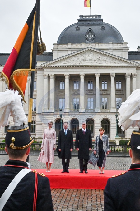 Le roi Philippe de Belgique, la reine Mathilde, le grand-duc Henri de Luxembourg, la grande-duchesse Maria Teresa - Le grand-duc Henri de Luxembourg et la grand duchesse Maria Teresa sont en visite d'état à Bruxelles le 16 avril 2024. © Frédéric Andrieu / Bestimage Belgium, Brussels, 16 april 2024 State visit from Luxembourg to Belgium. Grand Duke Henri and his wife Grand Duchess Maria-Teresa Place des Palais for the official welcome by King Philippe and Queen Mathilde. © F.Andrieu / Agencepeps