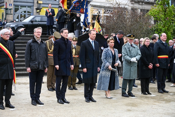Le grand-duc Henri de Luxembourg et la grand duchesse Maria Teresa sont en visite d'état à Bruxelles le 16 avril 2024. © Frédéric Andrieu / Bestimage Belgium, Brussels, 16 april 2024 State visit from Luxembourg to Belgium. Grand Duke Henri and his wife Grand Duchess Maria-Teresa during the ceremony to the unknown soldier. © F.Andrieu / Agencepeps