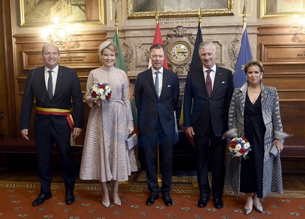le grand-duc Henri de Luxembourg, la grande-duchesse Maria Teresa de Luxembourg, La reine Mathilde de Belgique, Le roi Philippe de Belgique - Le grand-duc Henri de Luxembourg et la grand duchesse Maria Teresa sont en visite d'état à Bruxelles le 16 avril 2024. © Frédéric Andrieu / Bestimage Belgium, Brussels, 16 april 2024 State visit from Luxembourg to Belgium. Grand Duke Henri and his wife Grand Duchess Maria-Teresa and King Philippe, Queen Mathilde of Belgium during the ceremony to the city hall of Brussels reception by Philippe Close mayor. © F.Andrieu / Agencepeps
