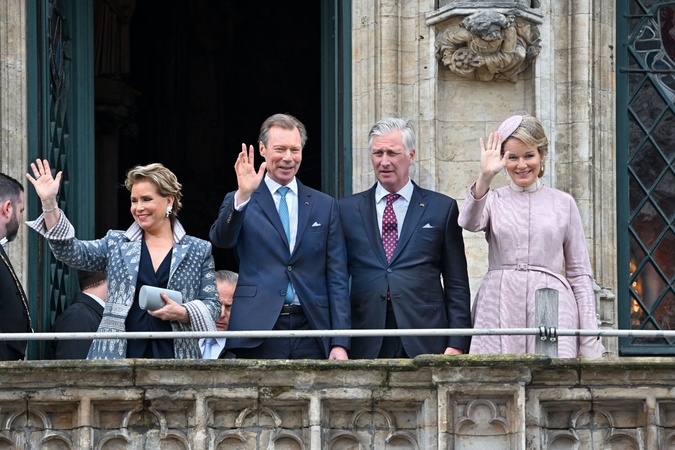 Le roi Philippe de Belgique, la reine Mathilde, le grand-duc Henri de Luxembourg, la grande-duchesse Maria Teresa - Le grand-duc Henri de Luxembourg et la grand duchesse Maria Teresa sont en visite d'état à Bruxelles le 16 avril 2024. © Frédéric Andrieu / Bestimage Belgium, Brussels, 16 april 2024 State visit from Luxembourg to Belgium. Grand Duke Henri and his wife Grand Duchess Maria-Teresa and King Philippe, Queen Mathilde of Belgium during the ceremony to the city hall of Brussels reception by Philippe Close mayor. © F.Andrieu / Agencepeps