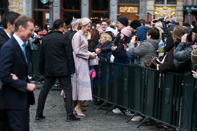 La reine Mathilde de Belgique - Le grand-duc Henri de Luxembourg et la grand duchesse Maria Teresa sont en visite d'état à Bruxelles le 16 avril 2024. © Frédéric Andrieu / Bestimage Belgium, Brussels, 16 april 2024 State visit from Luxembourg to Belgium. Grand Duke Henri and his wife Grand Duchess Maria-Teresa and King Philippe, Queen Mathilde of Belgium during the ceremony to the city hall of Brussels reception by Philippe Close mayor. © F.Andrieu / Agencepeps