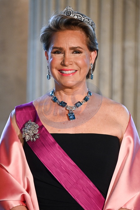 Le grand-duc Henri de Luxembourg et la grand duchesse Maria Teresa sont en visite d'état à Bruxelles le 16 avril 2024. © Frédéric Andrieu / Bestimage Belgium, Brussels, 16 april 2024 State visit from Luxembourg to Belgium. Grand Duke Henri and his wife Grand Duchess Maria-Teresa with King Philippe and Queen Mathilde during the state banquet at the Royal Castle of Laeken © F.Andrieu / Agencepeps