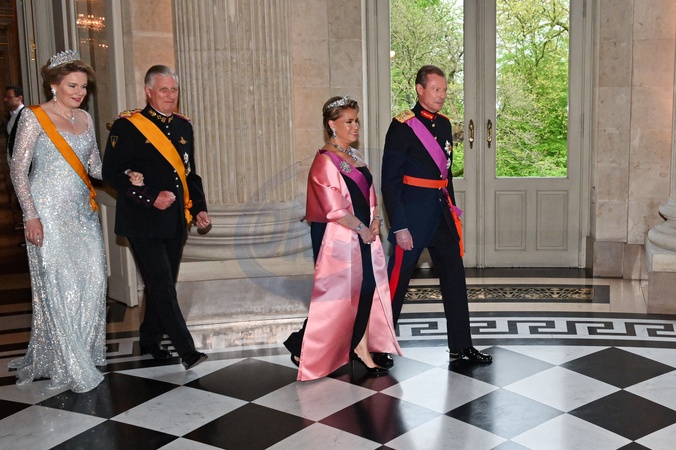 Le roi Philippe de Belgique , La reine Mathilde de Belgique - Le grand-duc Henri de Luxembourg et la grand duchesse Maria Teresa sont en visite d'état à Bruxelles le 16 avril 2024. © Frédéric Andrieu / Bestimage Belgium, Brussels, 16 april 2024 State visit from Luxembourg to Belgium. Grand Duke Henri and his wife Grand Duchess Maria-Teresa with King Philippe and Queen Mathilde during the state banquet at the Royal Castle of Laeken © F.Andrieu / Agencepeps
