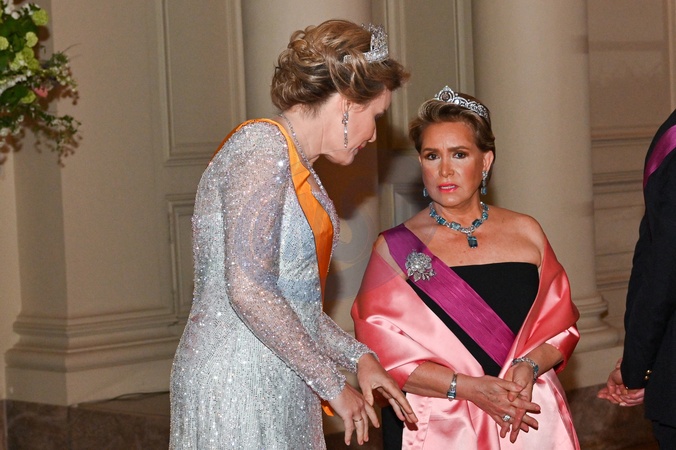 La reine Mathilde de Belgique - Le grand-duc Henri de Luxembourg et la grand duchesse Maria Teresa sont en visite d'état à Bruxelles le 16 avril 2024. © Frédéric Andrieu / Bestimage Belgium, Brussels, 16 april 2024 State visit from Luxembourg to Belgium. Grand Duke Henri and his wife Grand Duchess Maria-Teresa with King Philippe and Queen Mathilde during the state banquet at the Royal Castle of Laeken © F.Andrieu / Agencepeps