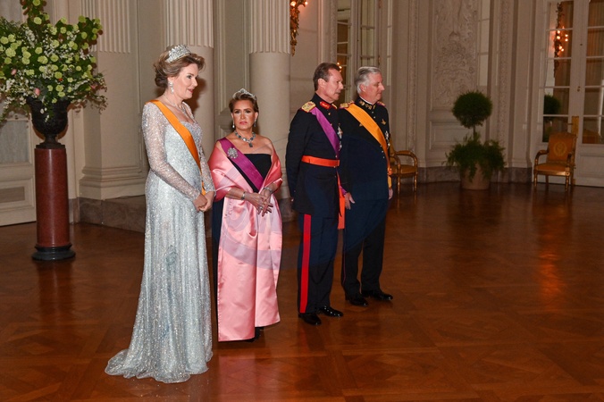Le grand-duc Henri de Luxembourg et la grand duchesse Maria Teresa sont en visite d'état à Bruxelles le 16 avril 2024. © Frédéric Andrieu / Bestimage Belgium, Brussels, 16 april 2024 State visit from Luxembourg to Belgium. Grand Duke Henri and his wife Grand Duchess Maria-Teresa with King Philippe and Queen Mathilde during the state banquet at the Royal Castle of Laeken © F.Andrieu / Agencepeps