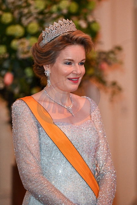 La reine Mathilde de Belgique - Le grand-duc Henri de Luxembourg et la grand duchesse Maria Teresa sont en visite d'état à Bruxelles le 16 avril 2024. © Frédéric Andrieu / Bestimage Belgium, Brussels, 16 april 2024 State visit from Luxembourg to Belgium. Grand Duke Henri and his wife Grand Duchess Maria-Teresa with King Philippe and Queen Mathilde during the state banquet at the Royal Castle of Laeken © F.Andrieu / Agencepeps
