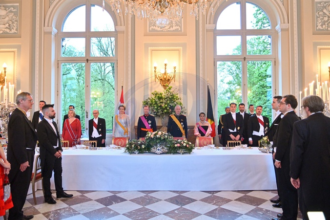 Le roi Philippe de Belgique, la reine Mathilde, le grand-duc Henri de Luxembourg, la grande-duchesse Maria Teresa - Le grand-duc Henri de Luxembourg et la grand duchesse Maria Teresa sont en visite d'état à Bruxelles le 16 avril 2024. © Frédéric Andrieu / Bestimage Belgium, Brussels, 16 april 2024 State visit from Luxembourg to Belgium. Grand Duke Henri and his wife Grand Duchess Maria-Teresa with King Philippe and Queen Mathilde during the state banquet at the Royal Castle of Laeken © F.Andrieu / Agencepeps