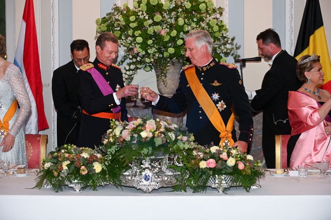 Le roi Philippe de Belgique - Le grand-duc Henri de Luxembourg et la grand duchesse Maria Teresa sont en visite d'état à Bruxelles le 16 avril 2024. © Frédéric Andrieu / Bestimage Belgium, Brussels, 16 april 2024 State visit from Luxembourg to Belgium. Grand Duke Henri and his wife Grand Duchess Maria-Teresa with King Philippe and Queen Mathilde during the state banquet at the Royal Castle of Laeken © F.Andrieu / Agencepeps