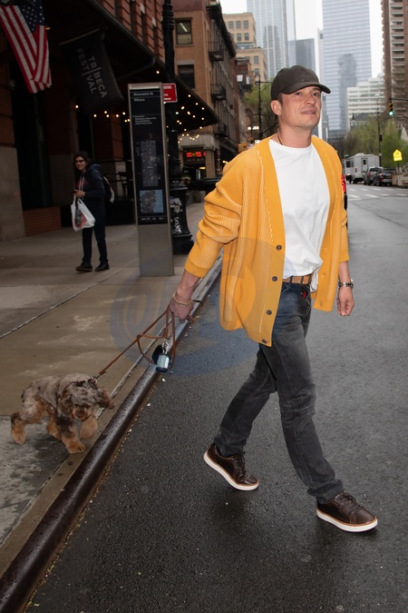 Actor Orlando Bloom seen leaving his hotel with his dog in tow in New York City, USA, 17 April 2024, Credit:Avalon.red / Avalon