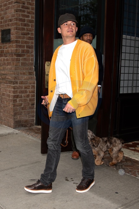 Actor Orlando Bloom seen leaving his hotel with his dog in tow in New York City, USA, 17 April 2024, Credit:Avalon.red / Avalon