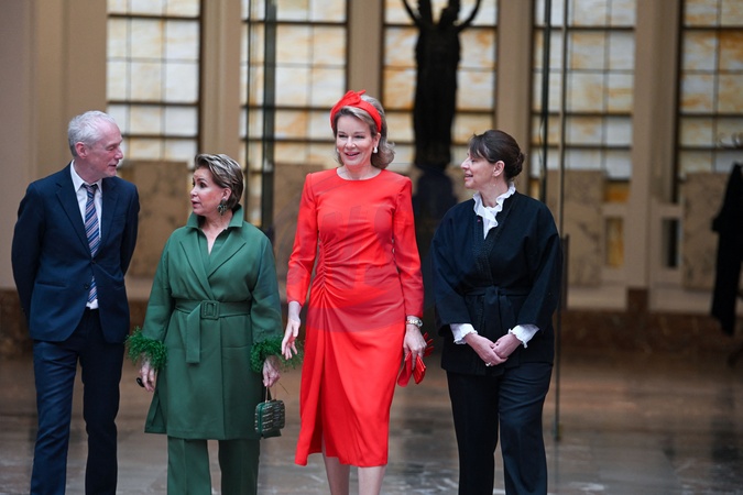 Królowa Belgii Matylda i wielka księżna Maria Teresa z Luksemburga podczas wizyty na wystawie surrealistów Bozar z Dali i Magritte w Brukseli