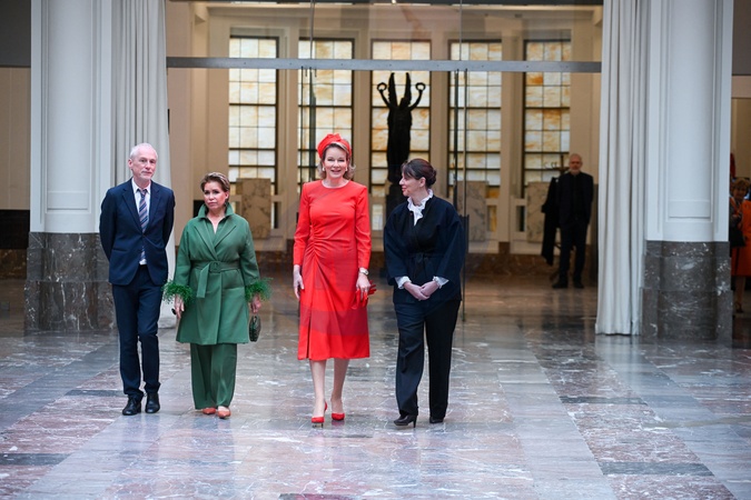 Królowa Belgii Matylda i wielka księżna Maria Teresa z Luksemburga podczas wizyty na wystawie surrealistów Bozar z Dali i Magritte w Brukseli
