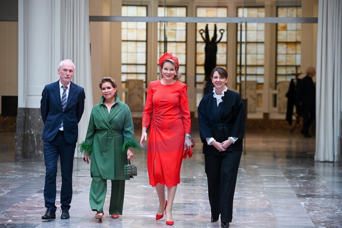 Królowa Belgii Matylda i wielka księżna Maria Teresa z Luksemburga podczas wizyty na wystawie surrealistów Bozar z Dali i Magritte w Brukseli