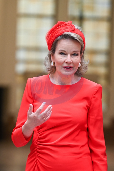 La reine Mathilde de Belgique et la grande-duchesse Maria Teresa de Luxembourg lors de la visite de l'exposition surréaliste Bozar avec Dali et Magritte à Bruxelles, le 17 avril 2024. Le Grand Duc et la Grande Duchesse de Luxembourg sont en visite officielle en Belgique. State visit of Their Royal Highnesses the Grand Duke and Grand Duchess of Luxembourg to Belgium. Visit to Bozar Surrealist exhibition with Dali and Magritte pictured on April 17, 2024 in Brussels, Belgium. April 17th, 2024.