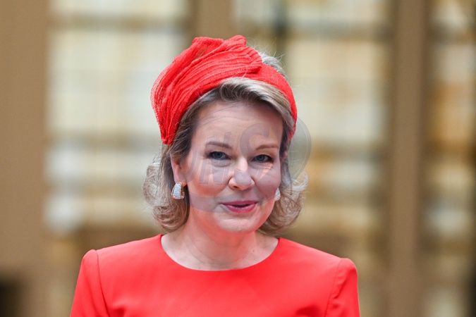 La reine Mathilde de Belgique et la grande-duchesse Maria Teresa de Luxembourg lors de la visite de l'exposition surréaliste Bozar avec Dali et Magritte à Bruxelles, le 17 avril 2024. Le Grand Duc et la Grande Duchesse de Luxembourg sont en visite officielle en Belgique. State visit of Their Royal Highnesses the Grand Duke and Grand Duchess of Luxembourg to Belgium. Visit to Bozar Surrealist exhibition with Dali and Magritte pictured on April 17, 2024 in Brussels, Belgium. April 17th, 2024.