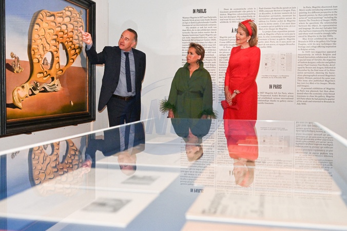 Królowa Belgii Matylda i wielka księżna Maria Teresa z Luksemburga podczas wizyty na wystawie surrealistów Bozar z Dali i Magritte w Brukseli