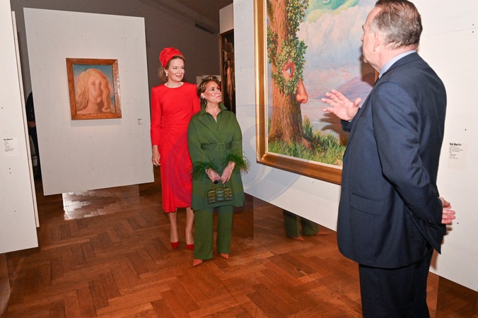 Królowa Belgii Matylda i wielka księżna Maria Teresa z Luksemburga podczas wizyty na wystawie surrealistów Bozar z Dali i Magritte w Brukseli