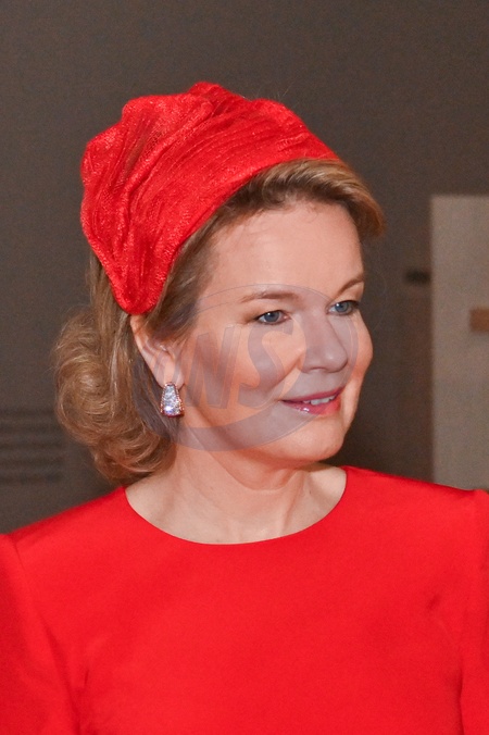 La reine Mathilde de Belgique et la grande-duchesse Maria Teresa de Luxembourg lors de la visite de l'exposition surréaliste Bozar avec Dali et Magritte à Bruxelles, le 17 avril 2024. Le Grand Duc et la Grande Duchesse de Luxembourg sont en visite officielle en Belgique. State visit of Their Royal Highnesses the Grand Duke and Grand Duchess of Luxembourg to Belgium. Visit to Bozar Surrealist exhibition with Dali and Magritte pictured on April 17, 2024 in Brussels, Belgium. April 17th, 2024.
