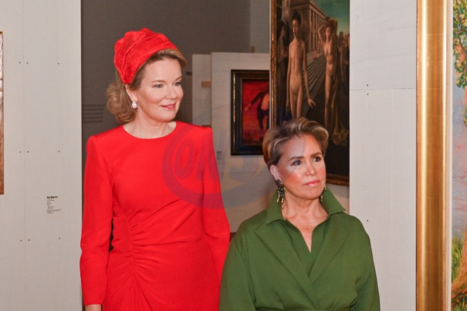 Królowa Belgii Matylda i wielka księżna Maria Teresa z Luksemburga podczas wizyty na wystawie surrealistów Bozar z Dali i Magritte w Brukseli