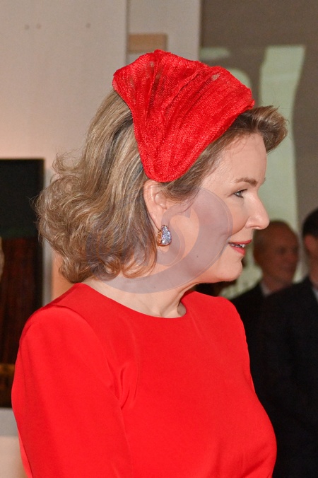 La reine Mathilde de Belgique et la grande-duchesse Maria Teresa de Luxembourg lors de la visite de l'exposition surréaliste Bozar avec Dali et Magritte à Bruxelles, le 17 avril 2024. Le Grand Duc et la Grande Duchesse de Luxembourg sont en visite officielle en Belgique. State visit of Their Royal Highnesses the Grand Duke and Grand Duchess of Luxembourg to Belgium. Visit to Bozar Surrealist exhibition with Dali and Magritte pictured on April 17, 2024 in Brussels, Belgium. April 17th, 2024.