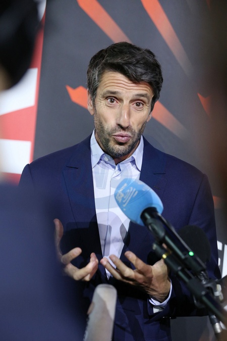 Tony Estanguet - Présentation au Grand Palais Ephémère, des tenues (réalisées par la marque de luxe Berluti) qui seront portées par les athlètes lors de cérémonie d'ouverture des Jeux Olympiques de PARIS2024. Paris, le 17 avril 2024. Presentation at the Grand Palais Ephémère, outfits (made by the luxury brand Berluti) which will be worn by the athletes during the opening ceremony of the PARIS2024 Olympic Games. Paris, April 17, 2024.