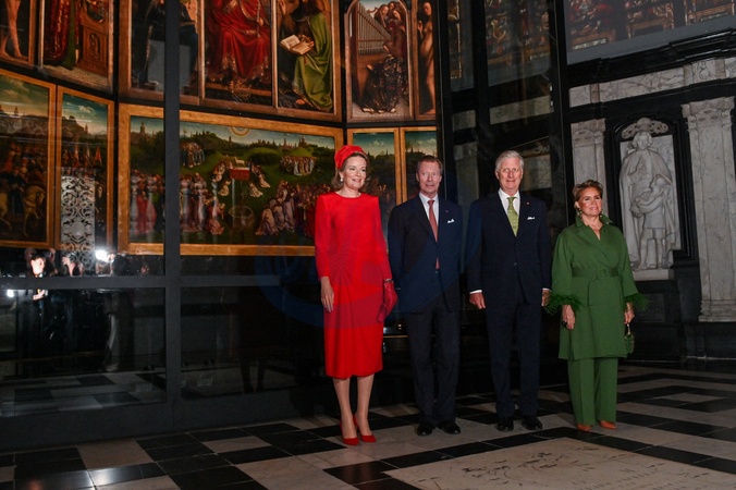 Le roi Philippe et la reine Mathilde de Belgique, ainsi que le Grand-Duc Henri et la Grande Duchesse Maria Teresa de Luxembourg, visitent la cathédrale de Saint Bavon à Gand