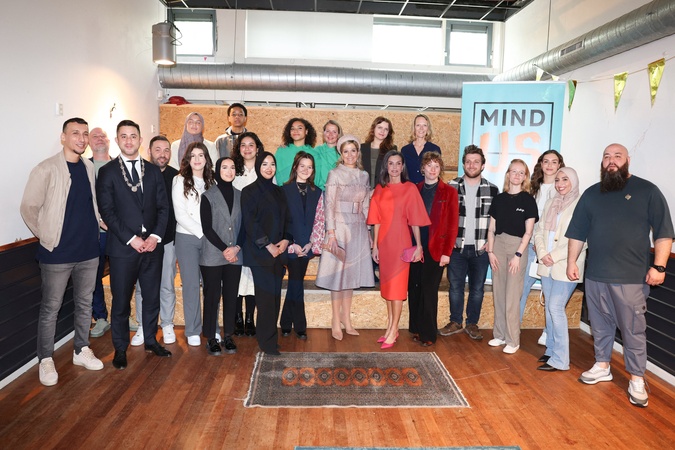 La reine Maxima des pays-Bas et la reine Letizia d'Espagne lors d'une visite au Festival du film espagnol d'Amsterdam (AFF) au LAB6, le 18 avril 2024. Le couple royal espagnol est en visite officielle aux Pays-Bas. Queen Maxima of the Netherlands during a visit to LAB6 in Amsterdam on the final day of the two day state visit of the Spanish Royals to the Netherlands. April 18th, 2024.