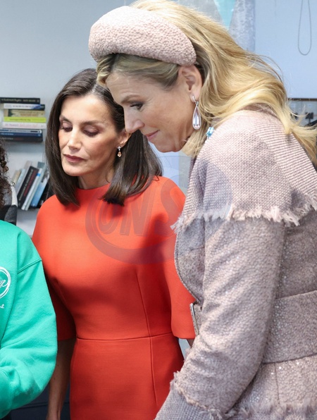 La reine Maxima des pays-Bas et la reine Letizia d'Espagne lors d'une visite au Festival du film espagnol d'Amsterdam (AFF) au LAB6, le 18 avril 2024. Le couple royal espagnol est en visite officielle aux Pays-Bas. Queen Maxima of the Netherlands during a visit to LAB6 in Amsterdam on the final day of the two day state visit of the Spanish Royals to the Netherlands. April 18th, 2024.