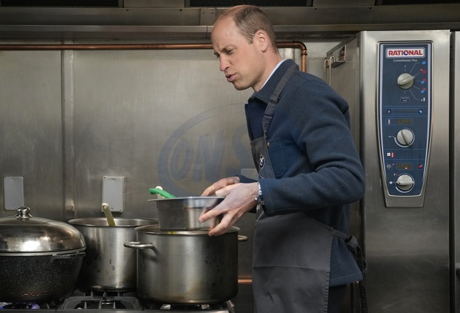 Britain's Prince William helps make bolognase sauce during a visit to Surplus to Supper, in Sunbury-on-Thames, Surrey, England, Thursday, April 18, 2024. The Prince visited Surplus to Supper, a surplus food redistribution charity, to learn about its work bridging the gap between food waste and food poverty across Surrey and West London. NO UK USE FOR 48 HOURS, Credit:Avalon.red / Avalon
