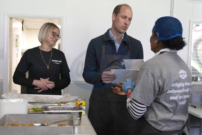 Britain's Prince William is given cards for his wife Kate, The Princess of Wales by volunteer Rachel Candappa during a visit to Surplus to Supper, in Sunbury-on-Thames, Surrey, England, Thursday, April 18, 2024. The Prince visited Surplus to Supper, a surplus food redistribution charity, to learn about its work bridging the gap between food waste and food poverty across Surrey and West London. NO UK USE FOR 48 HOURS, Credit:Avalon.red / Avalon