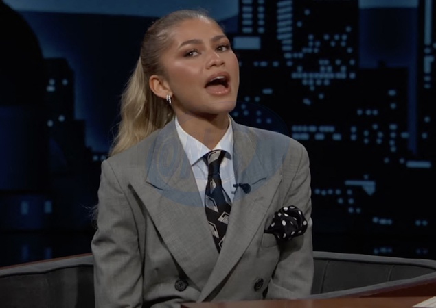 Pictures must credit: ABC Dune movie actress Zendaya found herself teased about her outfit on a TV chat show - a dress styled like a man's jacket coupled with shirt and tie. As the 27-year-old star took her seat on the Jimmy Kimmel show, she showed off lots of leg, set off by white stilettos. Kimmel, 56, told her: "You're dressed just like me except I have pants on !” She joked back:” You were my fashion inspiration today.” Kimmel then replied:” Next time let me know and I also won't wear pants !” She appeared on the show to talk about her new tennis-themed movie Challengers. Zendaya plays a tennis player turned coach whose husband is a world-famous grand slam champion. To jolt him out of a recent losing streak, she makes him play a challenger event and he finds himself playing his former best friend and Tashi's former boyfriend . Picture supplied by JLPPA