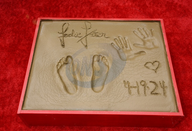 Jodie Foster odciska rece i stopy w Chinskim Teatrze w Hollywood