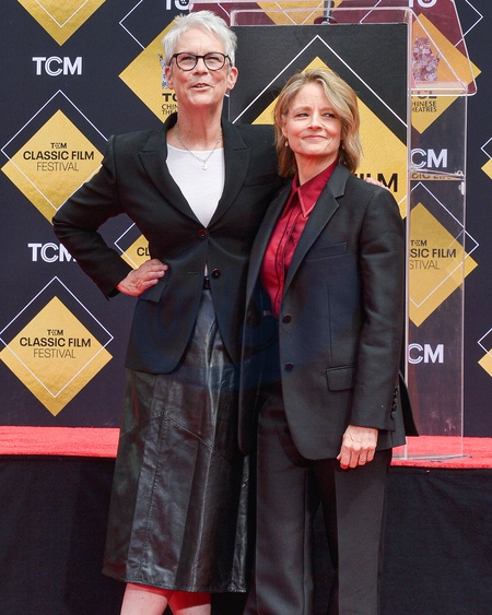 HOLLYWOOD, LOS ANGELES, CALIFORNIA, USA - APRIL 19: Jamie Lee Curtis and Jodie Foster attend the 15th Annual TCM Classic Film Festival 2024 - TCM Hosts Handprint And Footprint Ceremony Honoring Jodie Foster held at the TCL Chinese Theatre IMAX Forecourt on April 19, 2024 in Hollywood, Los Angeles, California, United States., Credit:Image Press Agency / Avalon
