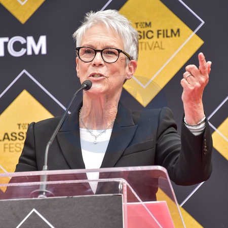 HOLLYWOOD, LOS ANGELES, CALIFORNIA, USA - APRIL 19: Jamie Lee Curtis speaks onstage during the 15th Annual TCM Classic Film Festival 2024 - TCM Hosts Handprint And Footprint Ceremony Honoring Jodie Foster held at the TCL Chinese Theatre IMAX Forecourt on April 19, 2024 in Hollywood, Los Angeles, California, United States., Credit:Image Press Agency / Avalon