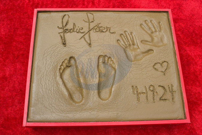 HOLLYWOOD, LOS ANGELES, CALIFORNIA, USA - APRIL 19: Jodie Foster's Handprint and Footprints are displayed during the 15th Annual TCM Classic Film Festival 2024 - TCM Hosts Handprint And Footprint Ceremony Honoring Jodie Foster held at the TCL Chinese Theatre IMAX Forecourt on April 19, 2024 in Hollywood, Los Angeles, California, United States., Credit:Image Press Agency / Avalon