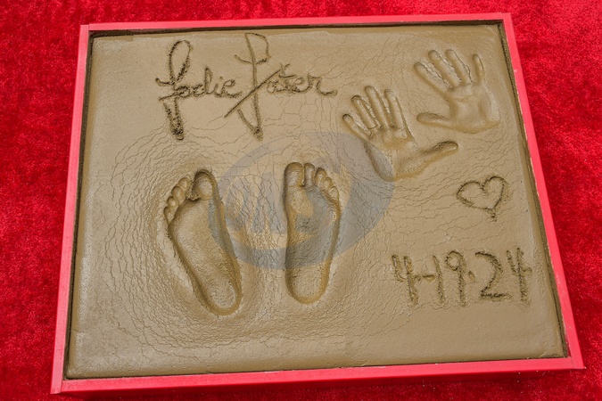 HOLLYWOOD, LOS ANGELES, CALIFORNIA, USA - APRIL 19: Jodie Foster's Handprint and Footprints are displayed during the 15th Annual TCM Classic Film Festival 2024 - TCM Hosts Handprint And Footprint Ceremony Honoring Jodie Foster held at the TCL Chinese Theatre IMAX Forecourt on April 19, 2024 in Hollywood, Los Angeles, California, United States., Credit:Image Press Agency / Avalon