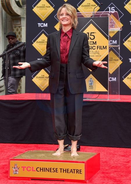15th Annual TCM Classic Film Festival 2024 - TCM Hosts Handprint And Footprint Ceremony Honoring Jodie Foster At TCL Chinese Theatre IMAX