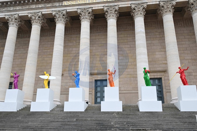 PARIS2024 : Six statuettes olympiques de la Venus de Milo installées devant l'Assemblée nationale à Paris
