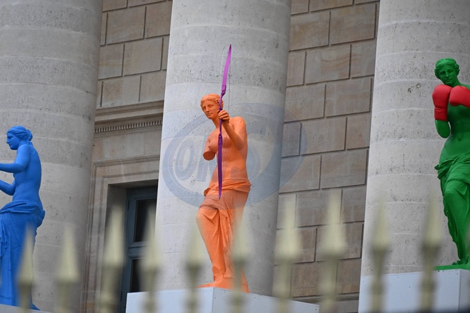 PARIS2024 : Six statuettes olympiques de la Venus de Milo installées devant l'Assemblée nationale à Paris