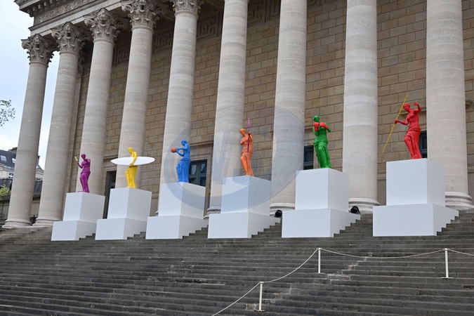 PARIS2024 : Six statuettes olympiques de la Venus de Milo installées devant l'Assemblée nationale à Paris
