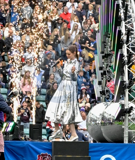 Sophie Ellis Bextor performs during the half time break at the England women beat Ireland Woman 88-10 at the 2024 Woman's Six Nation at Twickenham Stadium. London, Credit:Jules Annan / Avalon
