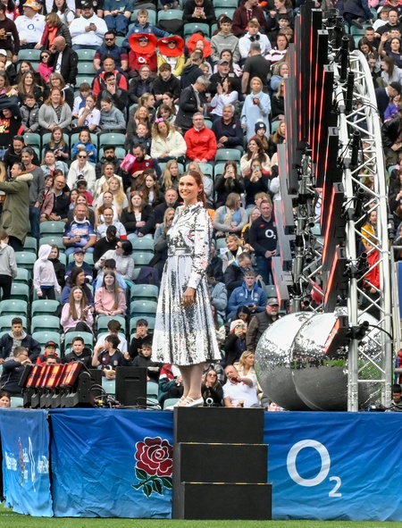 Sophie Ellis Bextor performs during the half time break at the England women beat Ireland Woman 88-10 at the 2024 Woman's Six Nation at Twickenham Stadium. London, Credit:Jules Annan / Avalon