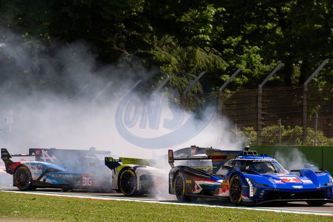 Carambolage au départ des 6 Heures d'Imola (Italie), le 21 avril 2024. © DPPI / Panoramic / Bestimage start of the race, depart accident, 36 VAXIVIERE Matthieu (fra), SCHUMACHER Mick (ger), LAPIERRE Nicolas (fra), Alpine Endurance Team, Alpine A424 36, Hypercar, action start during the 2024 6 Hours of Imola, 2nd round of the 2024 FIA World Endurance Championship, from April 18 to 21, 2024 on the Autodromo Internazionale Enzo e Dino Ferrari in Imola, Italy. April 21st, 2024.