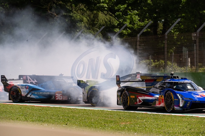 Carambolage au départ des 6 Heures d'Imola (Italie), le 21 avril 2024. © DPPI / Panoramic / Bestimage start of the race, depart accident, 36 VAXIVIERE Matthieu (fra), SCHUMACHER Mick (ger), LAPIERRE Nicolas (fra), Alpine Endurance Team, Alpine A424 36, Hypercar, action start during the 2024 6 Hours of Imola, 2nd round of the 2024 FIA World Endurance Championship, from April 18 to 21, 2024 on the Autodromo Internazionale Enzo e Dino Ferrari in Imola, Italy. April 21st, 2024.