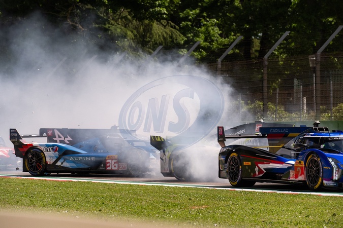 Carambolage au départ des 6 Heures d'Imola (Italie), le 21 avril 2024. © DPPI / Panoramic / Bestimage start of the race, depart accident, 36 VAXIVIERE Matthieu (fra), SCHUMACHER Mick (ger), LAPIERRE Nicolas (fra), Alpine Endurance Team, Alpine A424 36, Hypercar, action start during the 2024 6 Hours of Imola, 2nd round of the 2024 FIA World Endurance Championship, from April 18 to 21, 2024 on the Autodromo Internazionale Enzo e Dino Ferrari in Imola, Italy. April 21st, 2024.