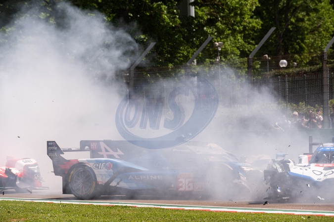 Carambolage au départ des 6 Heures d'Imola (Italie), le 21 avril 2024. © DPPI / Panoramic / Bestimage start of the race, depart accident, 36 VAXIVIERE Matthieu (fra), SCHUMACHER Mick (ger), LAPIERRE Nicolas (fra), Alpine Endurance Team, Alpine A424 36, Hypercar, action start during the 2024 6 Hours of Imola, 2nd round of the 2024 FIA World Endurance Championship, from April 18 to 21, 2024 on the Autodromo Internazionale Enzo e Dino Ferrari in Imola, Italy. April 21st, 2024.