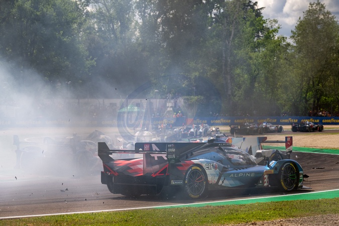 Carambolage au départ des 6 Heures d'Imola (Italie), le 21 avril 2024. © DPPI / Panoramic / Bestimage start of the race, depart accident, 36 VAXIVIERE Matthieu (fra), SCHUMACHER Mick (ger), LAPIERRE Nicolas (fra), Alpine Endurance Team, Alpine A424 36, Hypercar, action start during the 2024 6 Hours of Imola, 2nd round of the 2024 FIA World Endurance Championship, from April 18 to 21, 2024 on the Autodromo Internazionale Enzo e Dino Ferrari in Imola, Italy. April 21st, 2024.