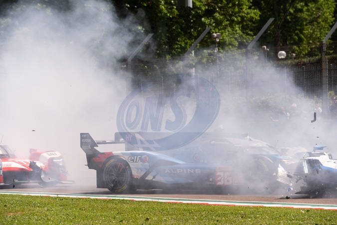 Carambolage au départ des 6 Heures d'Imola (Italie), le 21 avril 2024. © DPPI / Panoramic / Bestimage start of the race, depart accident, 36 VAXIVIERE Matthieu (fra), SCHUMACHER Mick (ger), LAPIERRE Nicolas (fra), Alpine Endurance Team, Alpine A424 36, Hypercar, action start during the 2024 6 Hours of Imola, 2nd round of the 2024 FIA World Endurance Championship, from April 18 to 21, 2024 on the Autodromo Internazionale Enzo e Dino Ferrari in Imola, Italy. April 21st, 2024.
