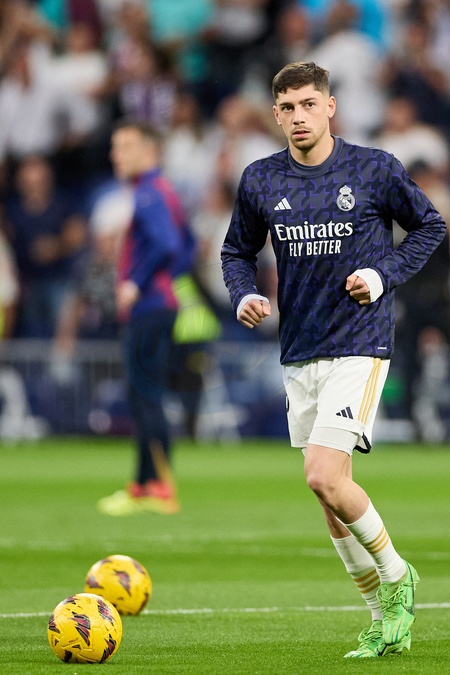 Federico Valverde of Real Madrid CF warming up during the LaLiga EA Sports match between Real Madrid and Barcelona FC at Stadium Santiago Bernabeu on April 21, 2024 in Madrid, Spain. (Photo by: Alvaro Medranda/ Panoramic)